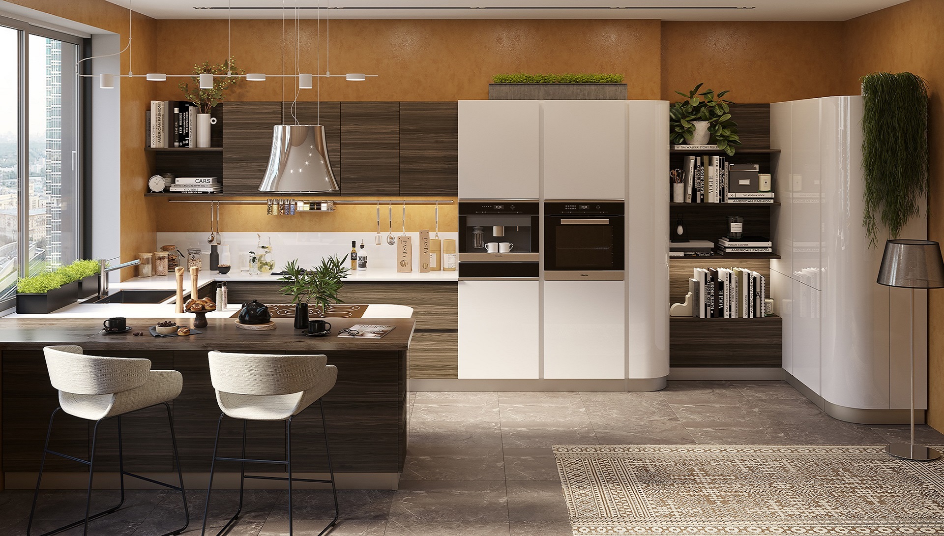 Чтобы гарнитур вписался в пространство, наши мастера произведут замеры, учтут расположение окон и дверей, инженерных коммуникаций, планировку. Если помещение нестандартное или имеются сложные условия (трубы, неровные стены), то при разработке чертежей адаптируем кухню под его особенности. Дизайнер разработает единую концепцию, обговорит все особенности расположения бытовых приборов, мебели и стилистики кухни. Клиент вместе с дизайнером подбирает цвет, материалы, фурнитуру, модное направление. Среди тенденций последних лет выделяются: